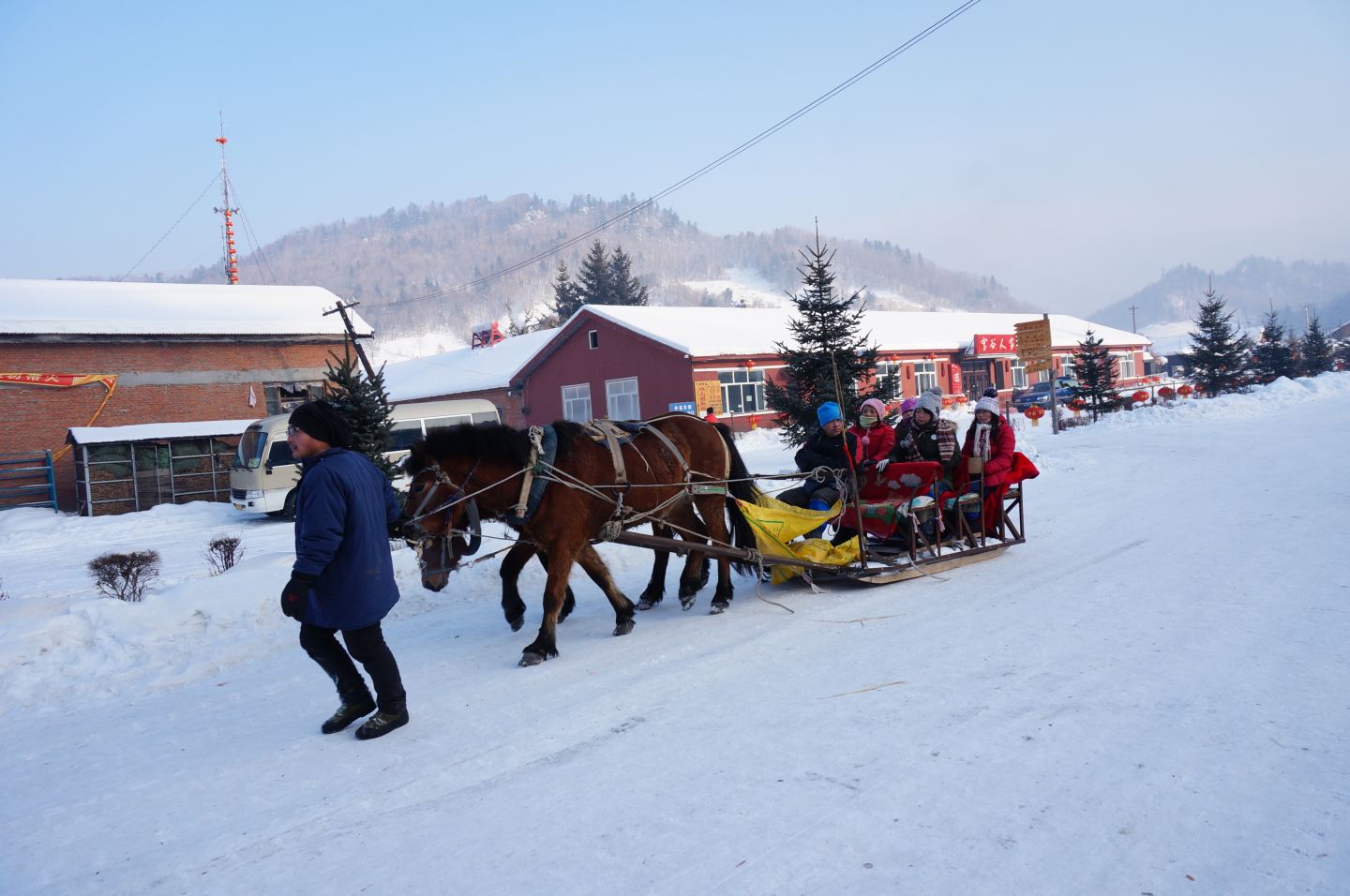 ☆后体验【自助雪爬犁】古老的东北木制雪爬犁相互拉着疯跑在雪韵大街上,感受当年东北孩子的互动游戏,观看雪乡夜景后入住酒店