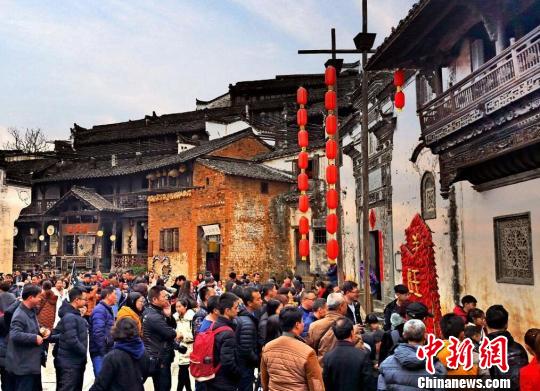 2018年春节,最美乡村江西婺源县篁岭等景区,游客摩肩接踵。